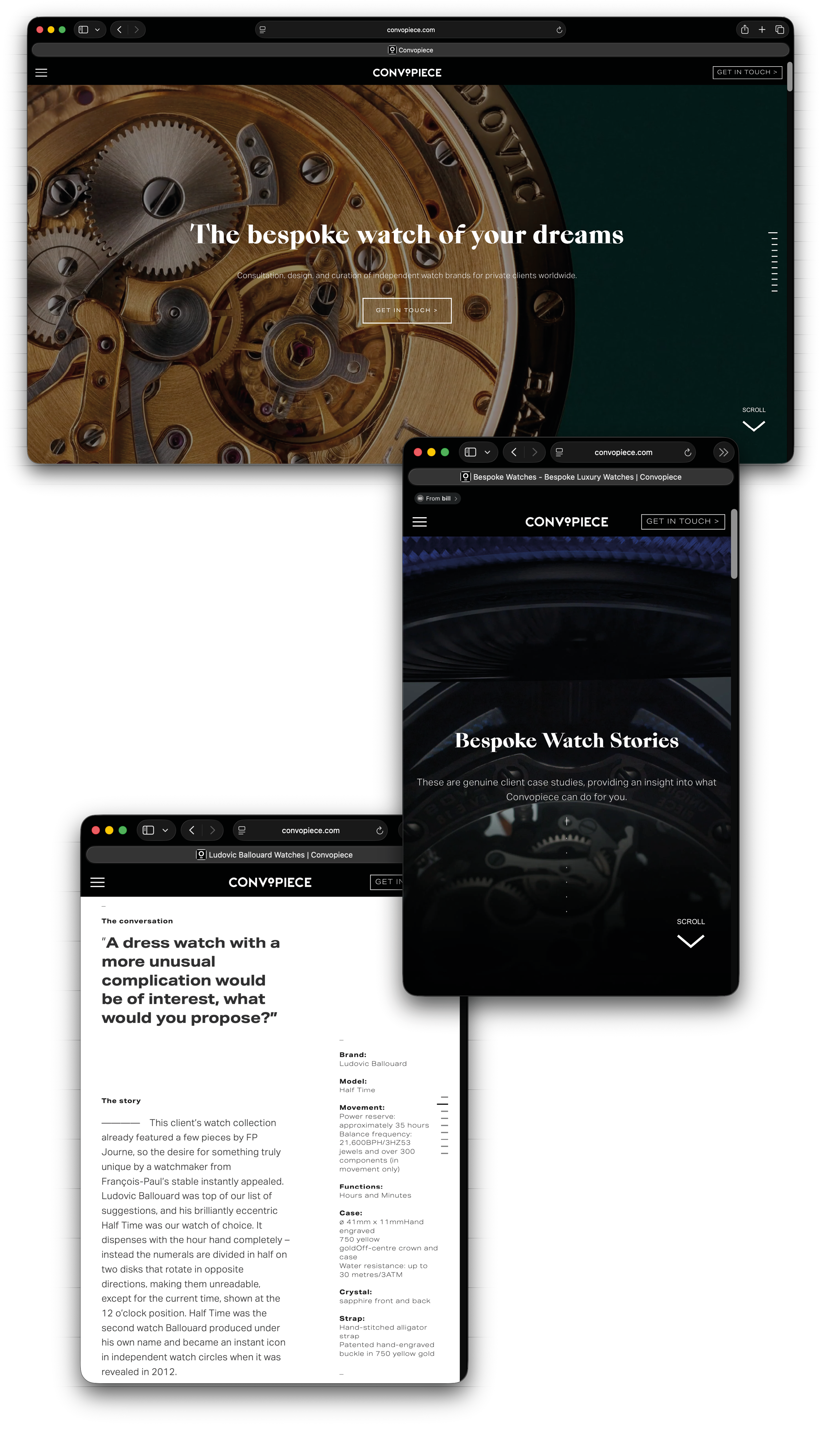 This company is the curator and conduit between collectors and artisan watchmakers, providing a unique collaborative service in which clients can co-create their personal luxury timepiece. We were approached to write its website, creating bespoke stories on high-end luxury watchmakers like Ludovic Ballouard, Franc Vila and De Bethune – all of whom produce very limited numbers of pieces per year. Our challenge was to explain these products’ value to an audience that were keen to explore beyond the usual high street names. We also created a concise yet elegant Convopiece Tone of Voice that was consistent and relevant when talking to time-poor, ultra-high-net worth people.
